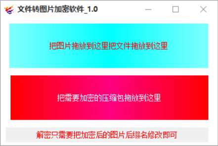 把加密的图片和需要加密的压缩包拖放到软件里面,软件会自动在桌面生成一个jpg,如果需要还原只需要把jpg改成压缩包的后缀即可。