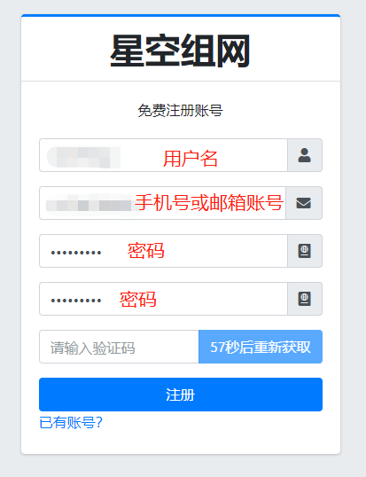请输入您的用户名、手机号码或电子邮件地址、设置一个安全的密码,并输入收到的验证码,即可注册成功。