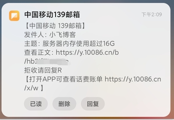 本次测试发送邮件的标题和内容均为:服务器内存使用超过16G