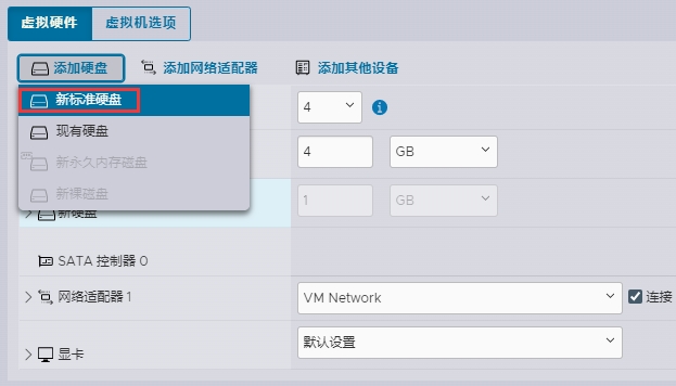 10、添加硬盘—>新标准硬盘;