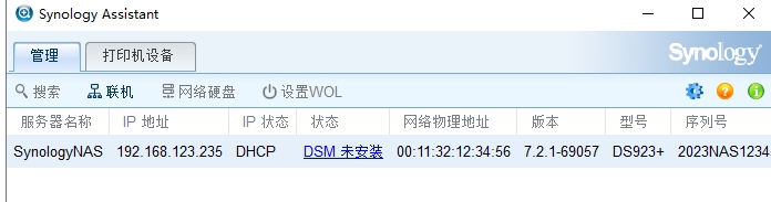 13、在电脑上用Synology Assistant搜索群晖的IP,如果你的电脑开启防火墙的话有可能会搜索不到,可以进路由器里面找IP;
