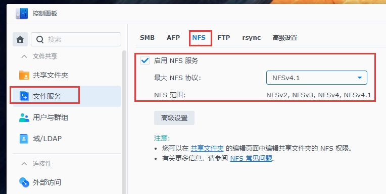 1、找到控制面板,文件服务,NFS,按图片所示开启即可