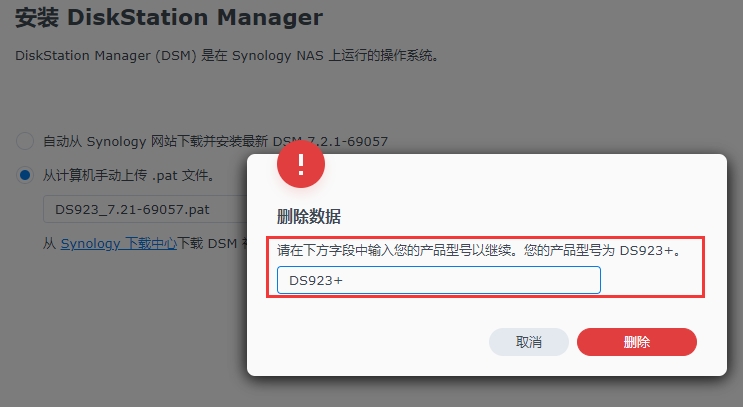 16、输入我们要安装群晖系统的型号,我装的是DS923+,所以输入DS923+,删除;