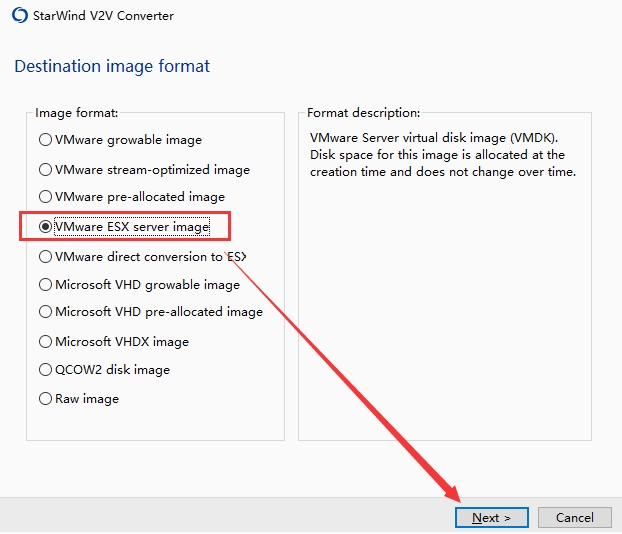 3、Next,选择Vmware ESX server image,Next