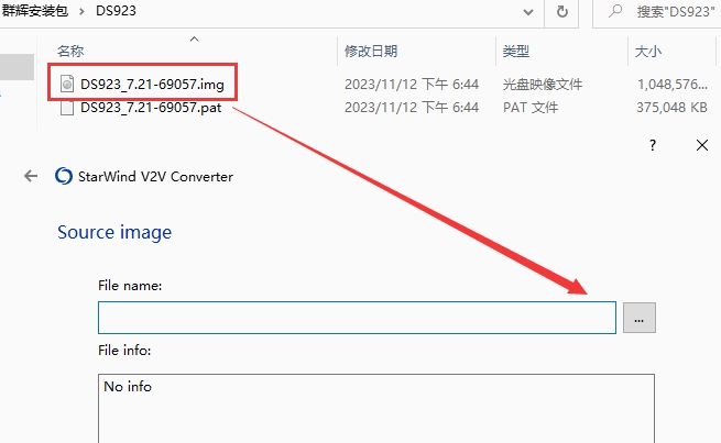 2、找到群晖的引导文件DS923_7.2-69057.img,文件名和路径不能有中文和特殊符号