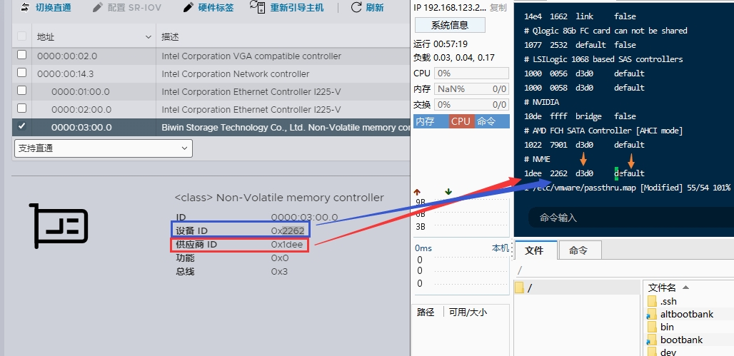 vi /etc/vmware/passthru.map