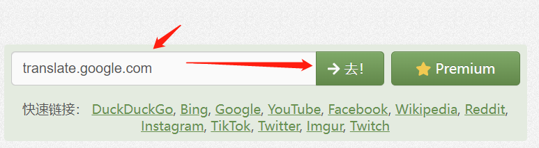 2、点击红色部分,会跳转到一个网站,输入你需要访问的网址,如:translate.google.com,还支持ChatGpt